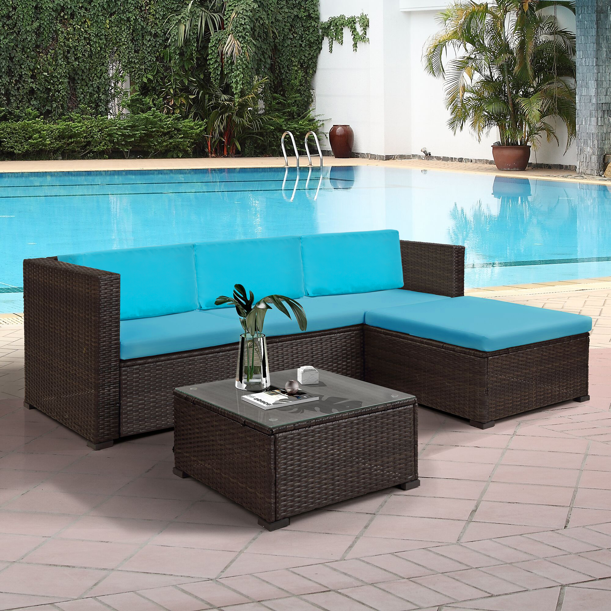 This 3 piece bistro set is great for any sized patio space. Get 5% in rewards with club o! Merax 4 pc outdoor rattan furniture set patio wicker cushioned set garden sofa set(cushion green): Merax outdoor patio 9 piece wicker dining set with cushions overstock $ 913.99. 4.3 out of 5 stars 13 ratings.